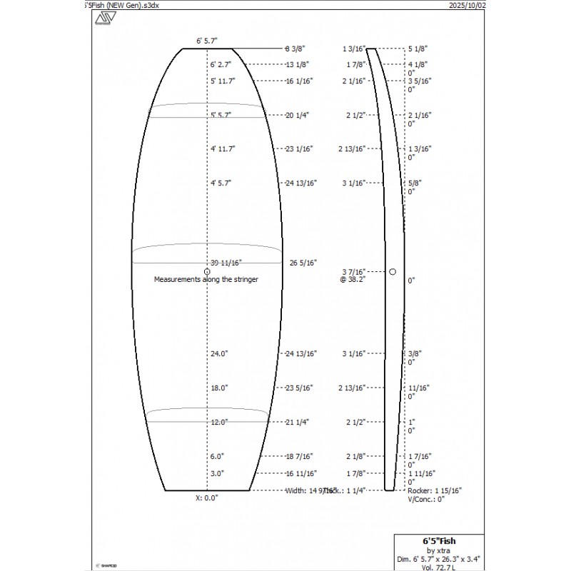 Blanks di lunghezza 6'5'' in PU per la costruzione di tavole da surf tipo fish o retro.